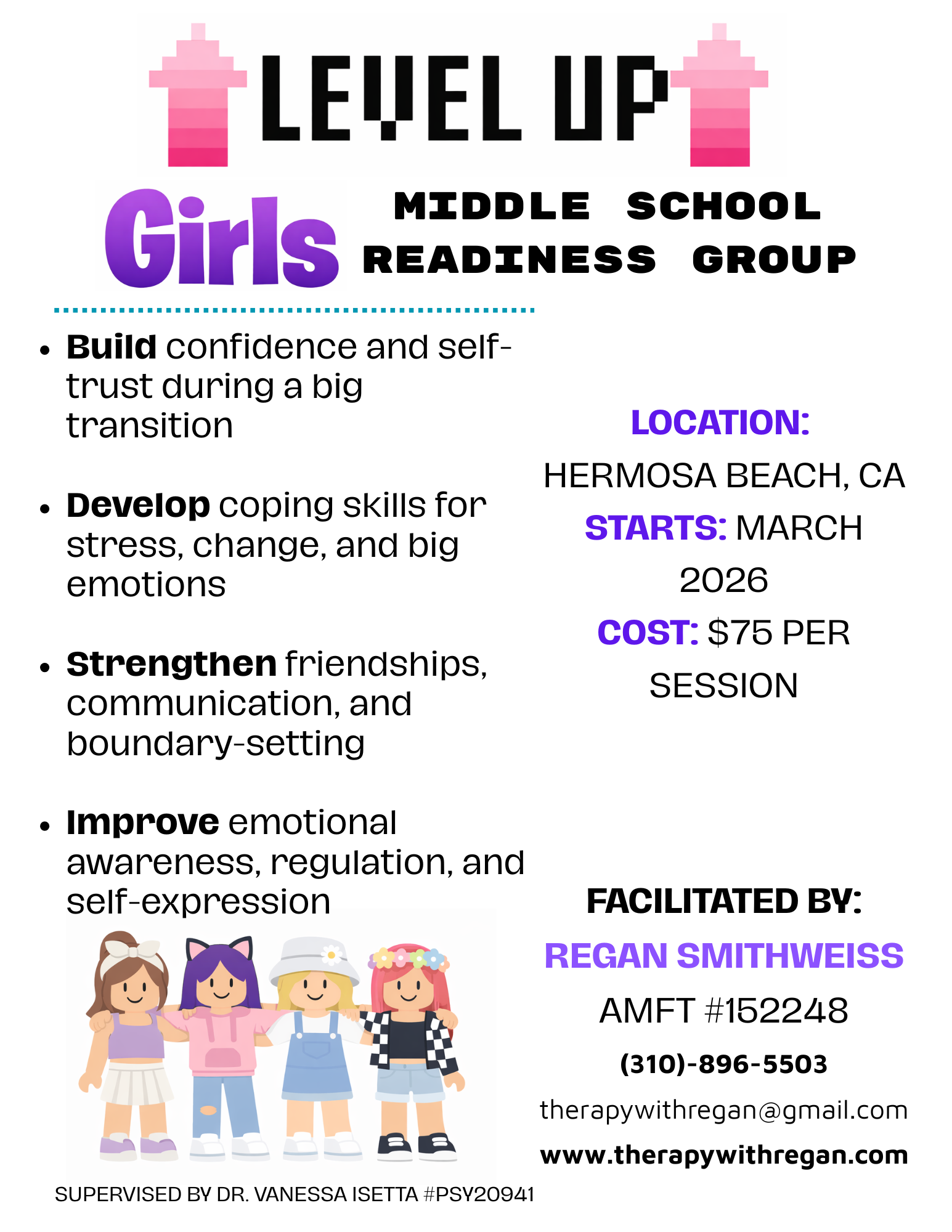 A supportive group designed to help girls navigate the transition from 5th grade into middle school.